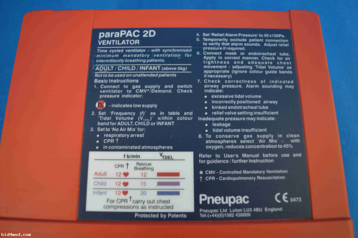 Available for sale Pneupac paraPAC Ventilator